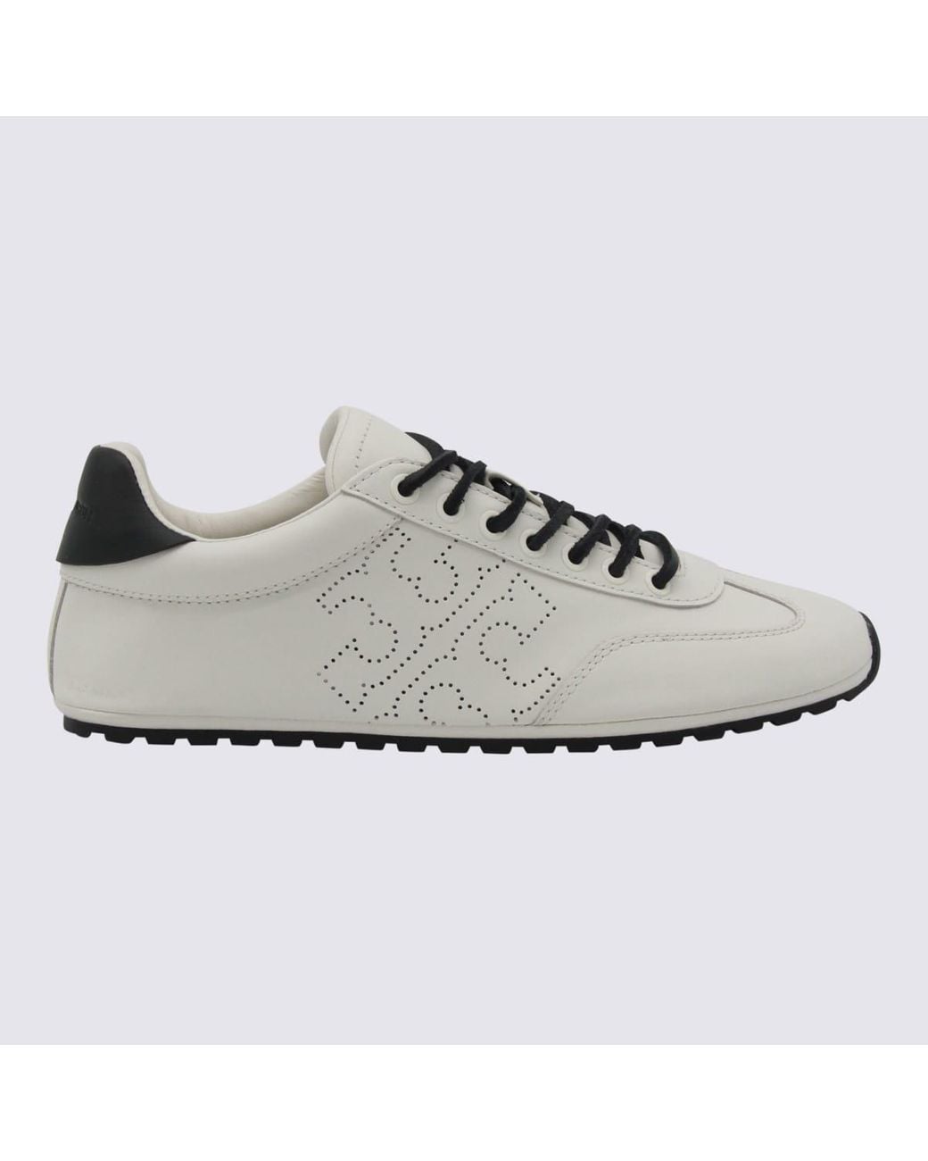White leather sneakers from Tory Burch featuring round toe, cotton lace-up fastening, contrasting heel, branded insole and flat rubber sole.Composition: _cover, 100% Le - Sole, 100% Elastodiene