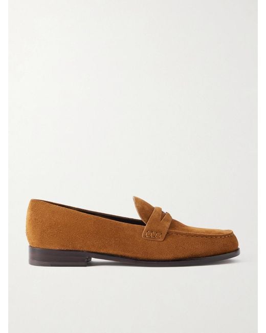 Tory Burch's loafers are embellished with a logo-engraved coin at the traditional penny slots. They're made from supple suede with cushioned footbeds and rest on buffed leather soles. Colour: brown