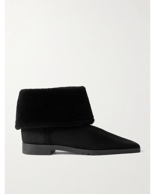 TOTEME’s ankle boots strike the perfect balance between comfort and style. They're made from soft suede and finished with cosy shearling cuffs. Colour: black