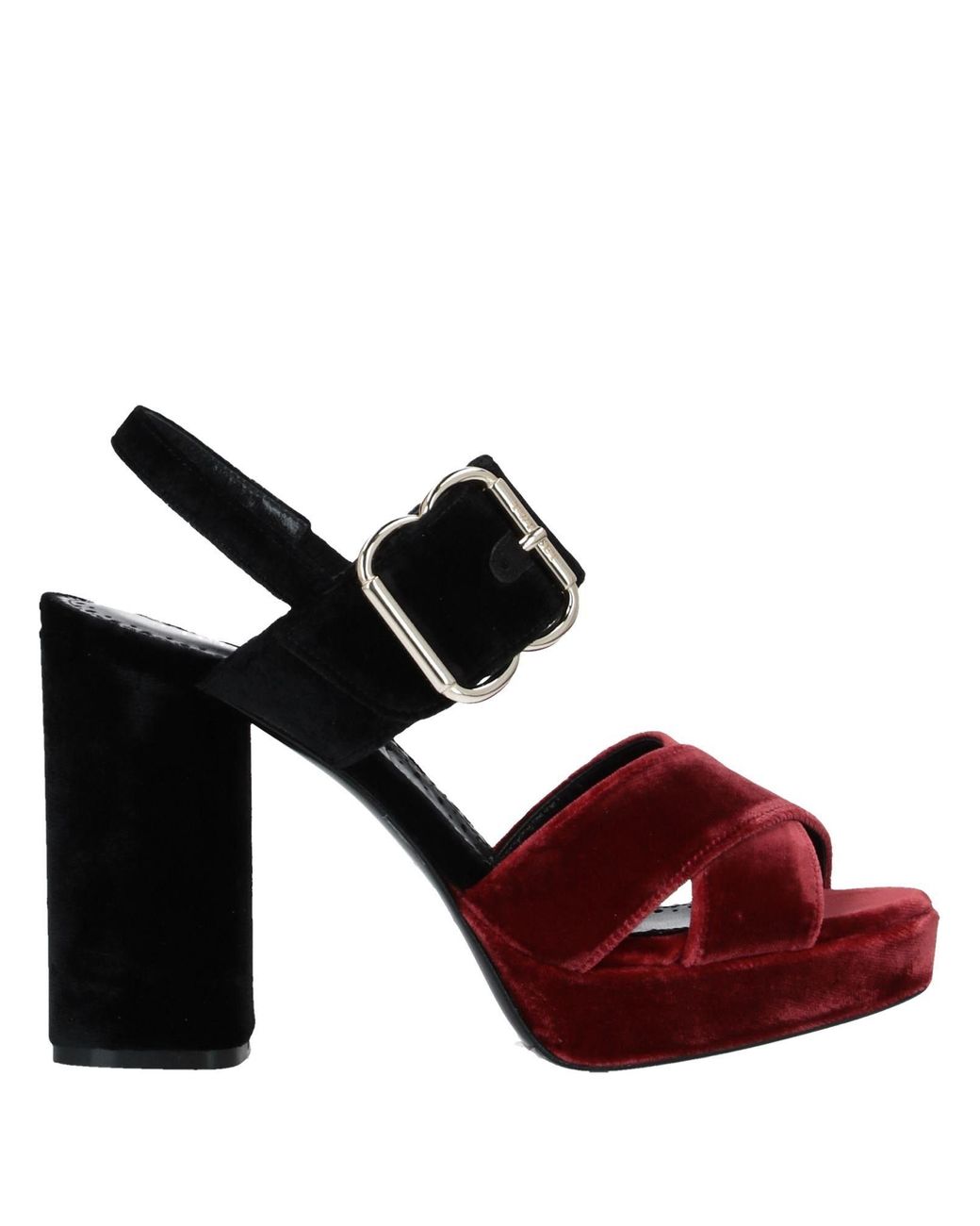 Ankle strap sandals, velvet, two-tone, no appliqués, leather lining, round toe, square heel, covered heel, leather sole, contains non-textile parts of animal origin. Textile fibres.