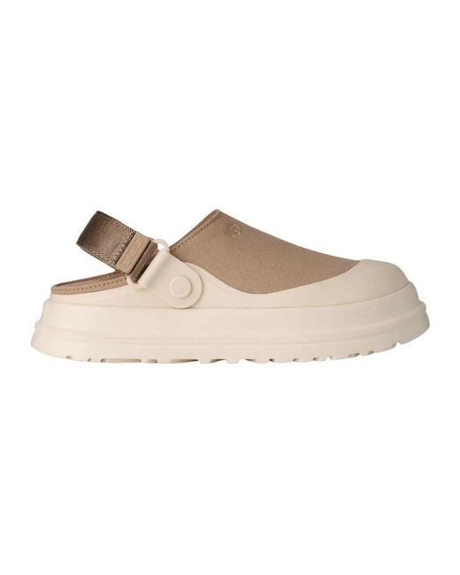 UGG Golden Glow Canvas Clog pairs breathable canvas comfort with a treated rubber sole for steady, weather-ready wear. Designed for transitional seasons and casual everyday use, it features an adjustable heel strap for a secure, personalized fit. Key attributes: Beige | Beige chiaro | Canvas | Breathable upper | Topical water-repellent treatment | Anti-odor sockliner | Stable, grippy rubber outsole | Adjustable webbed heel strap with hook-and-loop closure | TPU strap end | Molded rubber toe | Mesh lining | Microfiber sockliner | Minimal clog silhouette | Slingback mule style | Low-profile, refined design | Dimensions & fit: Adjustable fit via webbed heel strap | Composition & care: 100% canvas (upper) | Rubber outsole | Mesh lining | Microfiber sockliner Colour: natural