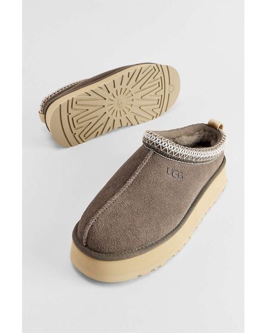 Iconic Tazz slippers from UGG. Crafted with a suede upper, soft sheepskin lining and a platform sugarcane EVA outsole with an enhanced rocker shape for effortless movement. Finished with signature UGG braid detailing. Colour: natural