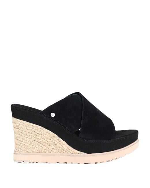 UGG. espadrille sandals, suede, plain colour, brand logo, fully lined, round toe, wedge heel, rope wedge, rubber sole, contains non-textile parts of animal origin, relax by the pool or vacation at the beach in style with this effortless summer holiday outfit. 100% Leather.