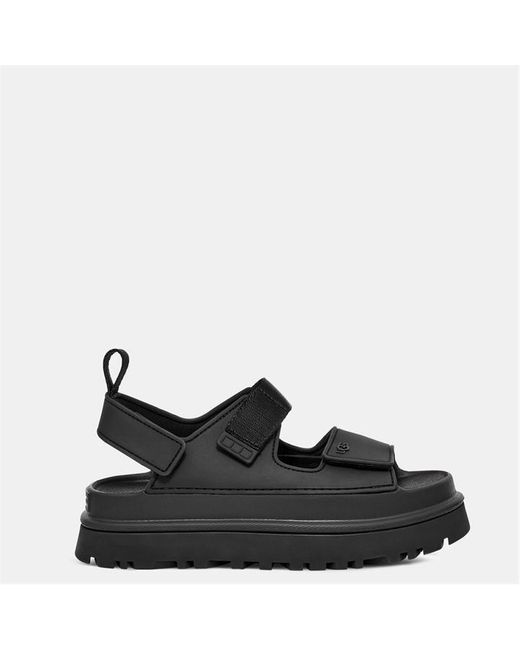 Step out into summer with the Golden Glow Sandals by UGG - a super lightweight and ultra-comfortable pair that is sure to complement any outfit. Presented in a sleek block colourway, the synthetic upper is made with a water-repellent finish, allowing you to step into the ocean or style around the pool on hot summer days. Coupled with adjustable touch-close straps to the wrap-around design, these platform sandals are made with a cushioned and supportive sugarcane EVA footbed for ultimate underfoot comfort no matter the terrain. Set upon a stacked platform lug sole, the signature sun logo adorned with UGG branding on the flat sole provides a touch of exclusivity. Alongside subtle UGG branding to the upper, these UGG sandals are the ultimate summer staple. Upper: TPU. Sole: Synthetic. Colour: black