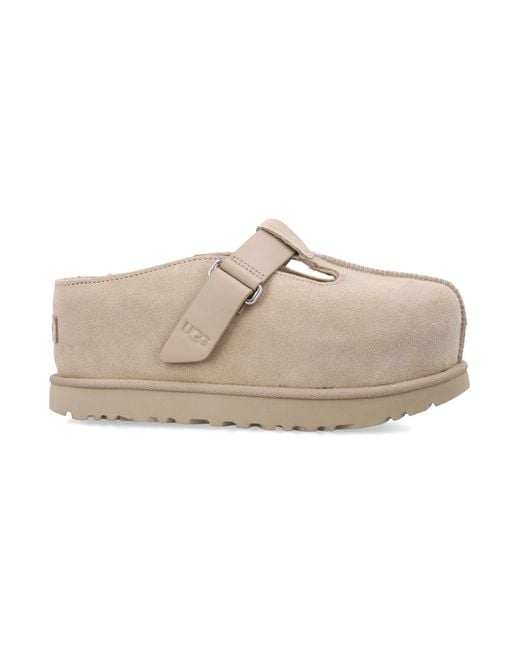 Ugg s Goldenstar Hi Clog Blends Modern Proportions With Everyday Comfort. Crafted From Soft Suede, It Features An Adjustable Strap With A Branded Detail That Enhances Fit And Stability. The Elevated Rubber Sole Provides Cushioning And Support, Making This Clog A Refined Yet Relaxed Choice For Casual Wear, Perfectly Suited To Contemporary Off-duty Styling. Suede Upper Adjustable Strap With Ugg Logo Raised Rubber Sole Closed-toe Design Rounded Toe Comfortable FitComposition: Upper, 100% cow suede Sole, 100% eva Colour: natural