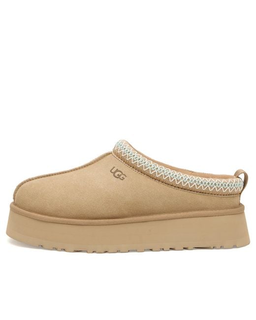 Platforms are back. And so, UGG add new height to the Tasman slip-on. Introducing the Tazz II — the same slipper comfort, now on an elevated platform that's unbelievably lightweight. Expect all the same comfort as the original UGG Tazz: the upper is made of smooth suede, lined with plush sheepskin, and the sugarcane EVA outsole features an enhanced rocker shape for effortless movement. Sheepskin Suede Upper, Rear Tab Pull, Sheepskin Insole & Lining, Sugarcane EVA Outsole, UGGbraid, Style Code: 1174471-SAN, Shop All Women's UGG Slip-On Shoes, Shop All Women's Slip-On Shoes, - UGG Women's Tazz II Sand