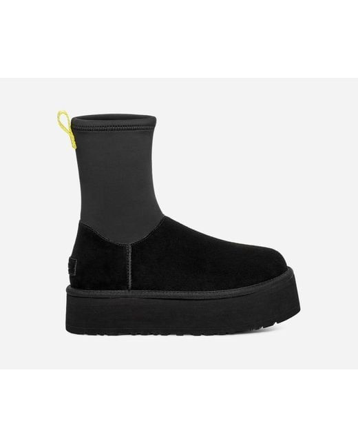 The Classic Dipper is legitimately an autumnal slay. The shaft is a calf-hugging neoprene with a medial side-zipper, the platform is a leg-lengthening 2 inches of maximalist joy, and the inside is lined with the Feel of UGG® from our UGGplush™ lining. The Classic Dipper is ready to support your most authentic self-expression. | UGG® Classic Dipper Boot for Women in Black, Size 10, Neoprene/Suede/Wool