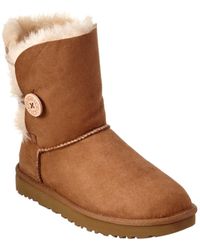 Based on feedback from members this item typically runs small. We suggest sizing up. Please note: This style runs small and is designed to be worn with bare feet. For best fit we suggest ordering one-half size up. Color/material: chestnut sheepskin and suede. Design details: pretreated to repel water and stains. Sheepskin lining. Rubber sole with traction. 1.5in heel. 5.25in shaft. 12.75in boot circumference. Please note: All measurements are approximate and were taken from a size 7; slight variations may occur. Our products are 100% genuine. This item was sourced from trusted independent suppliers and not directly from the brand owner. In all cases we stand by the authenticity of every product sold on our site. Colour: brown