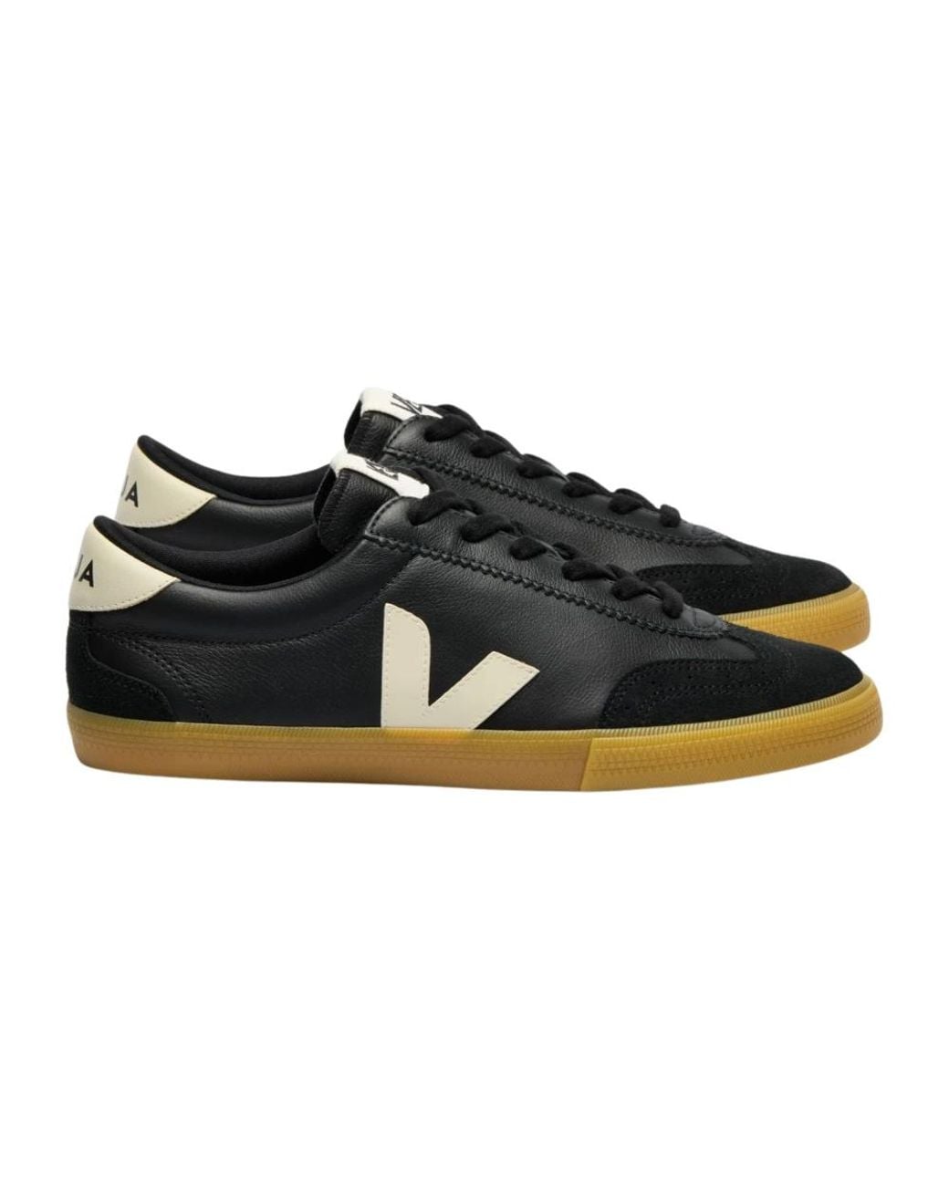 Veja Volley Leather from Veja is a leather trainer with a clean, panelled profile and a rubber sole designed for everyday wear and reliable traction. Key attributes: Black | Pierre | Leather | Cushioned midsole | Grippy rubber outsole | Lace-up closure with cotton laces | EVA insole for cushioning | Rubber outsole for grip | Panelled leather upper | Low-top silhouette | Rubber logo detail | Minimal, versatile profile | Composition & care: Upper: Cuero Trazado Orgánico (O.t.) | Panels: Cuero Trazado Orgánico (O.t.) | Logo: Caucho de Amazonía (26%), sílice mineral (22%), caucho sintético (21%) y otros (31%) | Insole: Caucho de Amazonía (11%), E.v.a. fuente biológica (52% con 42% caña de azúcar), E.v.a. reciclado (11%), algodón biológico (12%) y otros (14%) | Outsole: Caucho de Amazonía (40%), sílice mineral (23%), caucho reciclado (10%), caucho sintético (11%) y otros (16%) | Sideband: Goma sintética (40%), sílice mineral (22%) y otros (38%) | Lining: Poliéster reciclado (100%) | Laces: Algodón biológico (100%) | Made in Brazil Colour: black