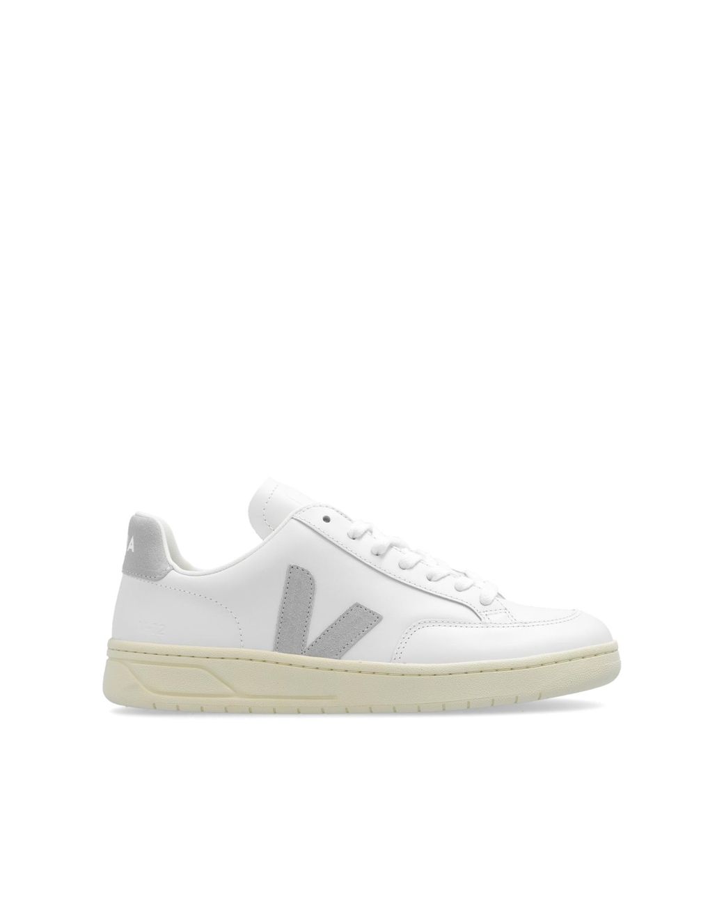 White and light grey ‘V-12 Leather’ lace-up sneakers from Veja.