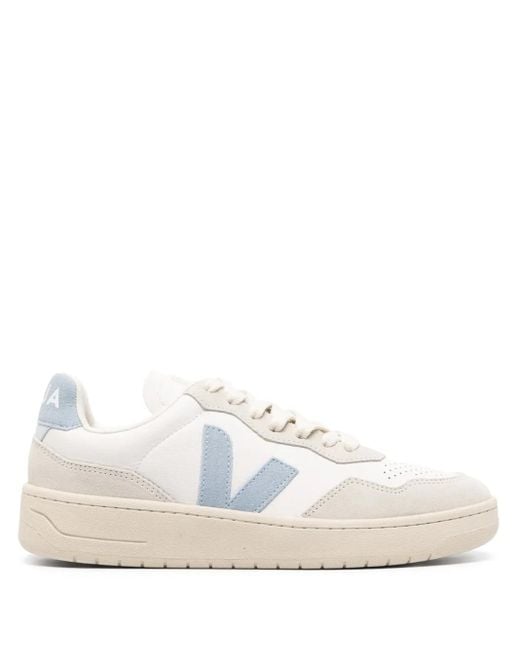 White/alice blue/light grey calf leather suede panelling logo-print tongue logo patch to the side round toe perforated toebox front lace-up fastening contrasting branded heel counter branded insole flat rubber sole Size: 38. Gender: Female. Material:Leather.