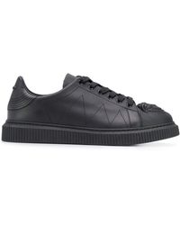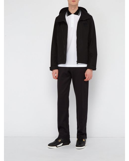 Donatella Versace continues to celebrate her late brother Gianni through the brand's AW18 collection, drawing inspiration from archival prints and original runway designs. Expect a combination of iconic house motifs and retro elements with more a modern interpretation. Crafted from black leather, these hi-top sneakers feature a round toe, a lace fastening, a logo patch at the tongue, gold-tone hardware, a high ankle and a printed logo.