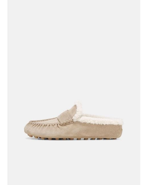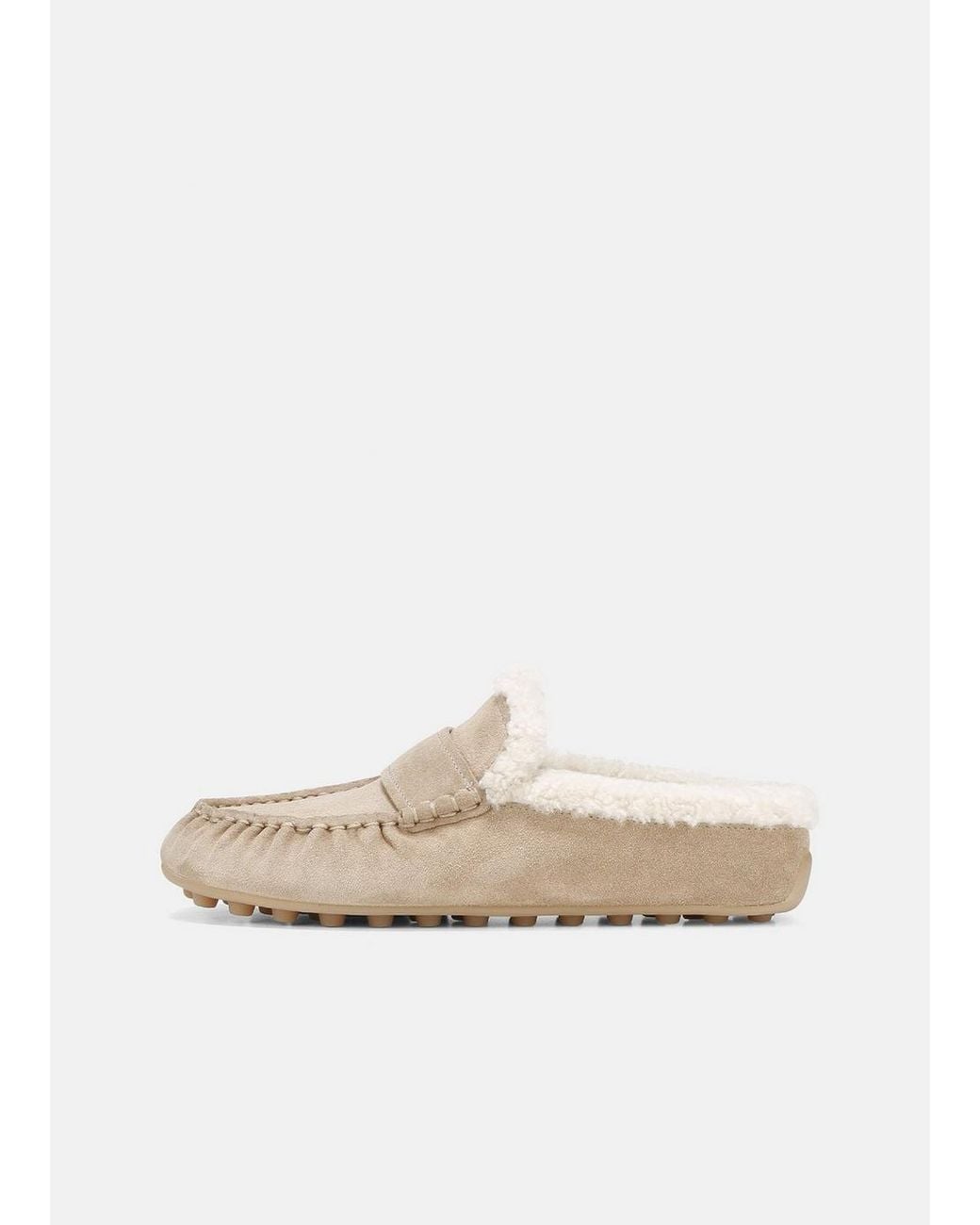 A driver meets slipper, our Berkley mule is crafted with a buttery suede outer and plush shearling lining for peak comfort and finished with a modern pod-detailed rubber sole. Colour: white