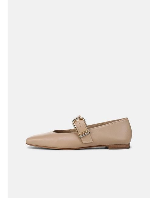 A square toe and oversized buckle lend modern allure to this vintage-inspired leather Mary Jane flat. Colour: white