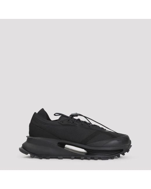 Y 3 Black S-Gendo Run Trainers. Round reinforced toe top lace-up fastening with drawstring detail, tonal strap with contrasting white logo on the upper, side engraved lettering logo, tonal sole with cut out detail. Colour: black