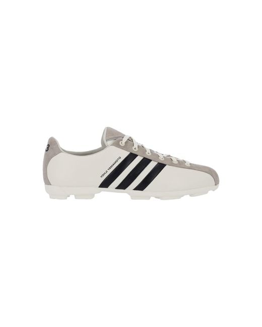 Y-3 Field sneakers in white calf leather with gray suede trim, round toe, laces, logo print on tongue, three stripes logo embroidery on the side, logo print on the back tab, rubber studded sole. - Sole: 100% rubber