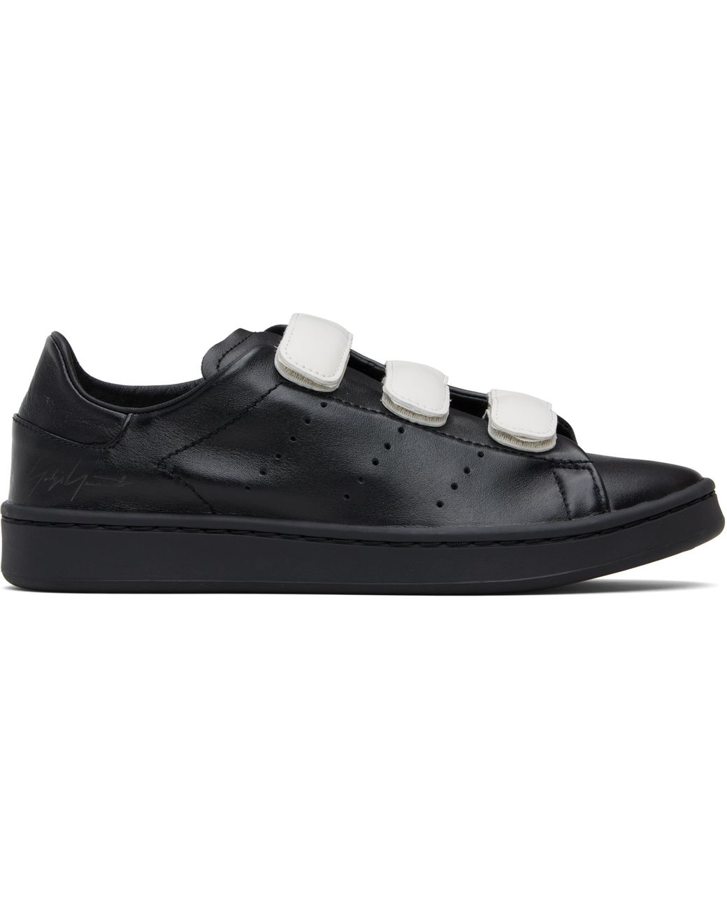 Low-top buffed leather trainers. · Velcro closure · Logo embossed at padded tongue · Perforated signature stripes at sides · Logo printed at outer side · Mesh lining · Treaded rubber sole Supplier color: Black/Black/Orbit grey Colour: black