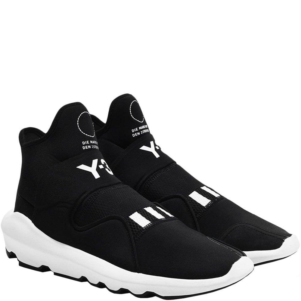 Crafted from a stretch neoprene upper, these AW18 Y-3 trainers featurea slip on design, mesh panelling, suede toe cap, contrasting branding, white foam midsole and black rubber outsole. Finished off with 3 contrasting stripes which represent the brands collaboration with Adidas. Y-3 trainers and clothing is the collaboration between Adidas and designer Yohji Yamamoto. Since its introduction in 2002, Y-3 clothing and footwear has managed to create a new fusion in fashion with the label's directional cuts, shapes and functional modern sports aesthetic.