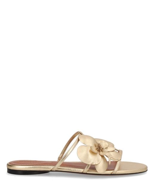 Orchid Appliquéd Glossed-Leather Sandals - Natural
