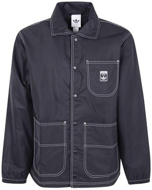Contrast-Stitch Pocketed Shirt Jacket - Black