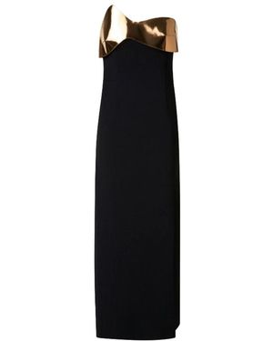 Midi Cocktail Dress With Gold Leather Highlight - Black