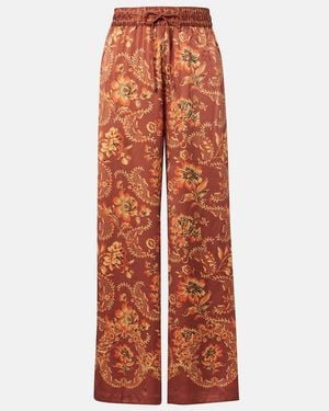Seraphina Printed Silk Wide-Leg Trousers - Orange