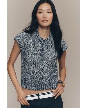 Lexi Wool-Blend Knitted Polo Top - Blue