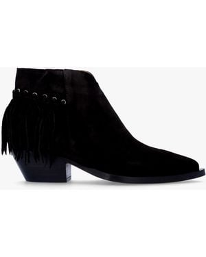 Ajax Black Suede Fringed Western Stacked Heel Ankle Boots - Black