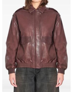 Pointed-Collar Leather Jacket - Brown