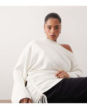 Curve Jersey Off Shoulder Wide Sleeve Top With Ruched Hem - White