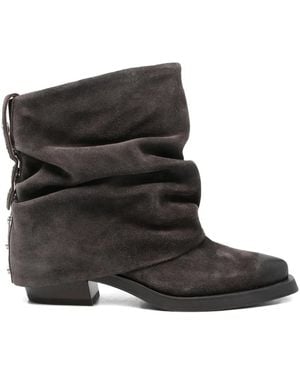 Square-Toed Ankle Boots With Studded Detailing - Black