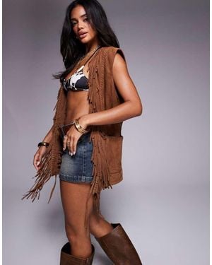 Premium Suede Fringe Gilet - Blue