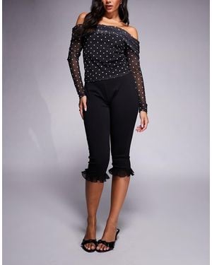 Ponte Capri Pant With Mesh Ruffle Detail - Black