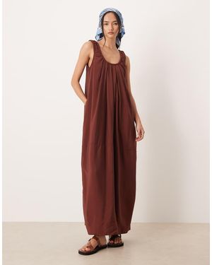 Scoop Ruched Neck Maxi Dress - Red