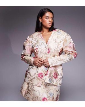 Curve Co-ord Jacquard Extreme Shoulder Cinched Blazer - Multicolour