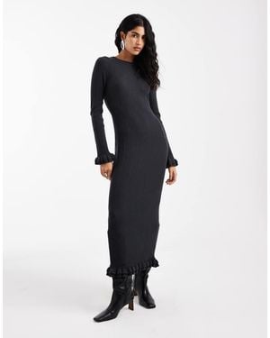 Rib Knit Frill Sleeve Maxi Dress - Blue