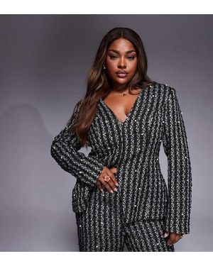 Curve Pearl Embellished Boucle Blazer Co-ord - Grey