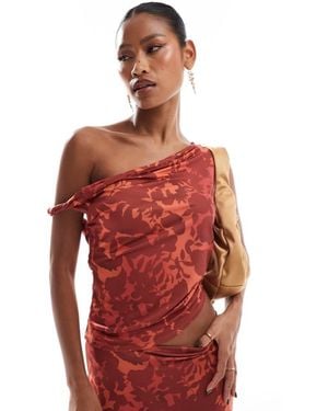 Co-Ord Slinky Twist Off Shoulder Top - Red
