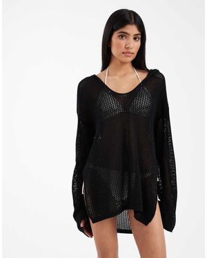 Rocky Knit Beach Chuck On Hooded Dress - Black