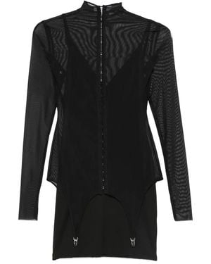 Backstage Mesh Long-Sleeve Mini Dress - Black