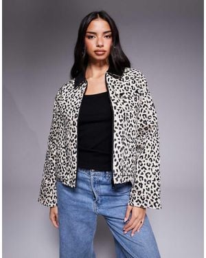 Leopard Zip Thru Jacket With Contrast Cord Collar - Grey