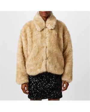 Sarissa Faux Fur Long Sleeve Short Jacket - Natural