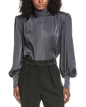 Olessia Lace High Neck Balloon Sleeve Shirt - Grey