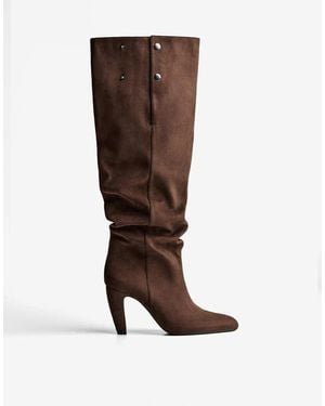 Fringe Detail Faux Suede Heeled Boots - Brown