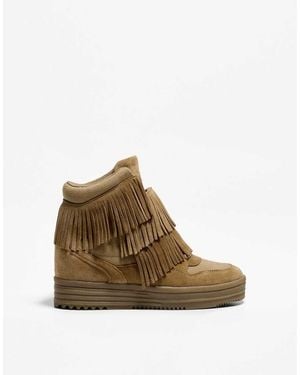 High Top Wedge Trainers With Fringing - Brown