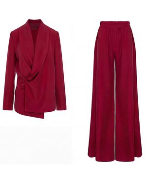Fuchsia Suit Featuring Blazer With Scarf Detail And Wide Leg Trousers - Purple