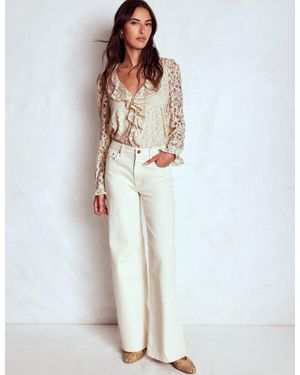 Sophie Ruffle Linen Top- Deco Palm - Blue