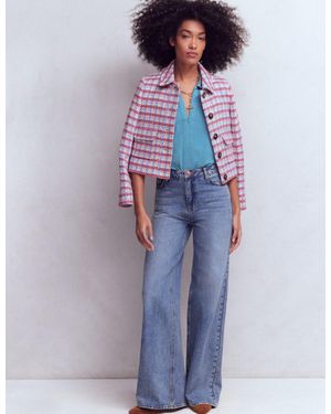 Notch Neck Linen Trim Top- Elaborate Terrace - Blue