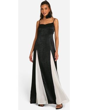 Satin Contrast Godet Maxi Dress - Black