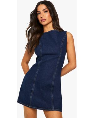 Petite Denim Fitted Shift Dress - Blue